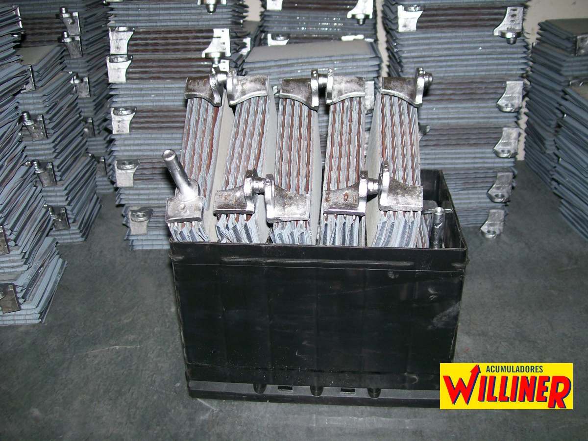 4- La perforación intercelda es con máquina neumática de alta precisión, la misma realiza los 5 orificios interceldas de cada bateria en forma simultánea, acelerando la velocidad de armado